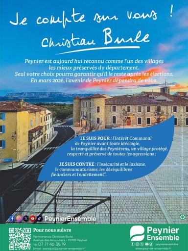 A cette occasion, la lettre de candidature et la vidéo officielle de candidature sont désormais en ligne. Elles présentent la vision, les valeurs et la méthode portées par Christian Burle et son équipe pour continuer à agir au service de Peynier et de ses habitants.